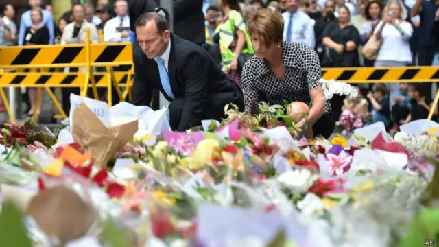 Avustralyalılar, baskının yaşandığı Sindey'in merkezindeki kafenin önüne çiçekler bırakarak hayatını kaybedenleri anıyor.
