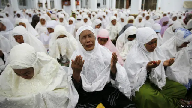 Endonezyalılar, kentte tsunami sonrası ayakta kalan ender binalardan olan Büyük Cami'de toplanarak kaybettiklerini andı.