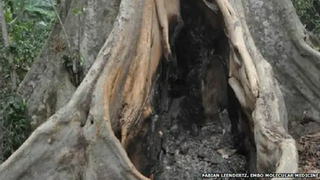 Sazlık ve ağaçların, Ebola virüsü taşıyan "meyve yarasaları" olarak bilinen, tropik bölgede yaşayan ve meyveyle beslenen yarasaları bölgeye çektiği düşünülüyor.