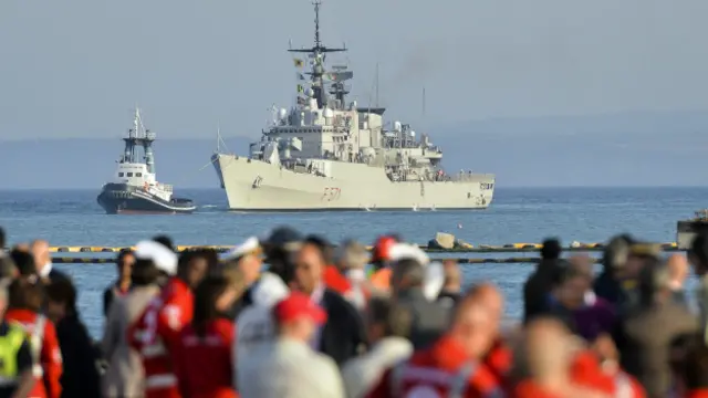 Sahil güvenlik komutanı, geminin AB (Avrupa Birliği) Sınırları Operasyonel İşbirliği Ajansı'na ait bir İzlanda gemisine bağlanarak kıyıya çekildiğini söyledi.