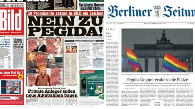 Birçok gazete, karşı gösterilere katılanların Pegida yürüyüşlerine katılanlardan çok daha fazla fazla olduğunu yazdı.