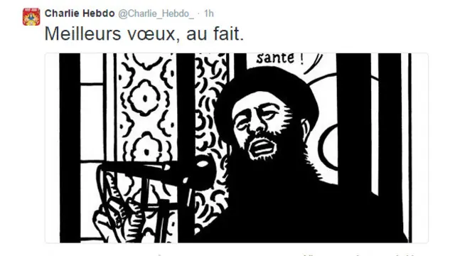 Derginin <link type="page"><caption> Twitter</caption><url href="https://twitter.com/Charlie_Hebdo_" platform="highweb"/></link> hesabında saldırıdan bir saat kadar önce Irak Şam İslam Devleti IŞİD'in lideri Ebu Bekir el Bağdadi'nin bir karikatürü yer almıştı.