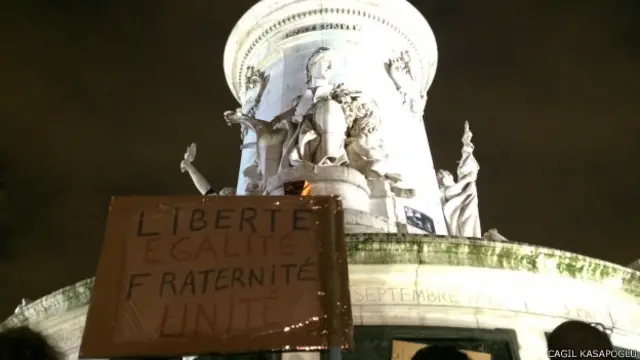 "Charlie Fransa'dır, Fransa Charlie'dir" diyor Place de la République'te toplananlar.