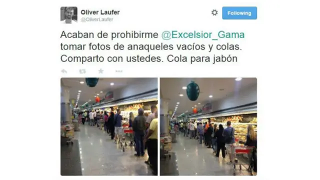 BBC’nin araştırmalarına göre fotoğraf sanatçısı Alejandro Cegarra, yılbaşı akşamı Venezuela'daki Excelsior Gama süpermarketler zincirinin bir mağazasının önünde durmuş ve marketin önünde uzayıp giden kuyrukların fotoğrafını çekmeye çalışıyordu.