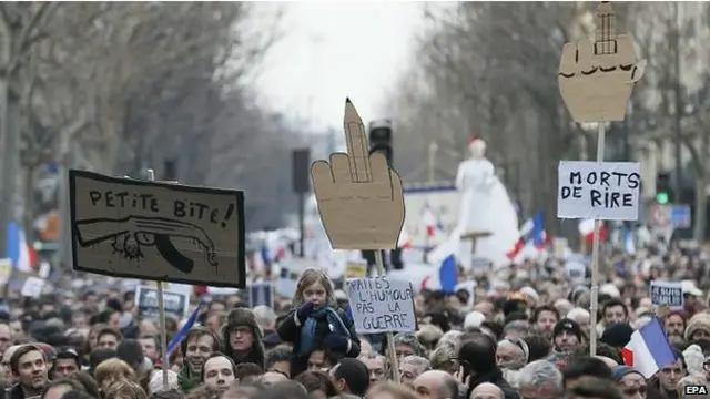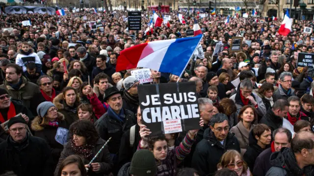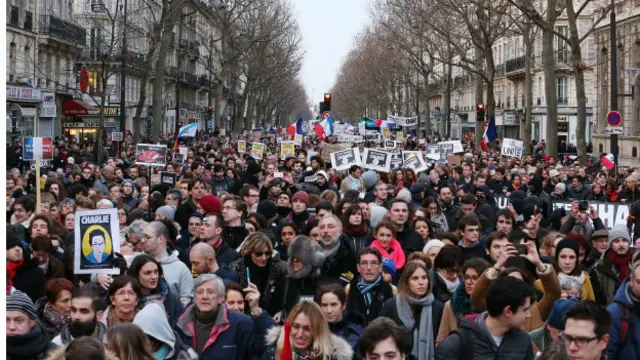 Fransa'da 17 kişinin öldüğü saldırıların ardından ülke genelinde yapılan 'birlik' yürüyüşlerine 3 milyondan fazla kişi katıldı.