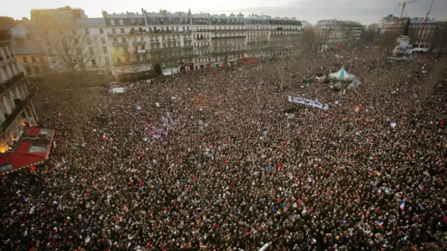 Paris'te 1.6 milyon kişi Republique (Cumhuriyet) Meydanı'ndan Place De La Nation'a (Ulus Meydanı) yürüdü.