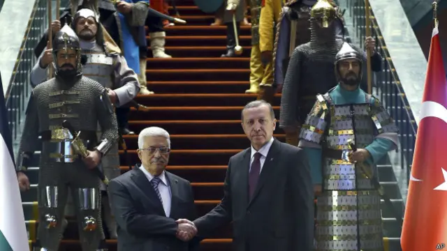 İngiliz Financial Times gazetesi, Cumhurbaşkanı Recep Tayyip Erdoğan'ın hafta başında Filistin Yönetimi Başkanı Mahmud Abbas'ı 16 Türk askeriyle karşılamasını değerlendirdi. Gazete, "Bu tablo, Türkiye'de son dönemde görülen en gerçeküstü manzaralardan biriydi" yorumunu yaptı.