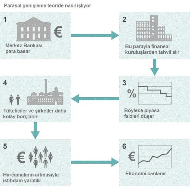 60 milyar euroluk yeni parasal genişleme kapsamında Avrupa Merkez Bankası hem devlet tahvilleri alacak hem de özel sektör menkul kıymetlerini piyasadan toplayacak.