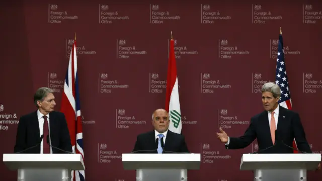 Irak Şam İslam Devleti (IŞİD) karşıtı koalisyona üye 21 ülkenin Londra'da buluşarak Irak ve Suriye'de geniş alanları kontrol eden gruba karşı stratejisini konuştuğu toplantının ardından ABD Dışişleri Bakanı John Kerry, Hammond ve Irak Başbakanı Haydar el Abadi ortak bir basın toplantısı düzenledi.