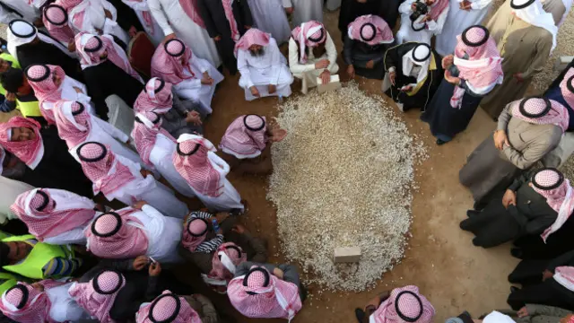 Kral Abdullah'ın kefene sarılı cenazesi Riyad'daki İmam Türki bin Abdullah Camii'ne, geleneksel kırmızı beyaz poşu takan prenslerin omuzunda taşınarak götürüldü.