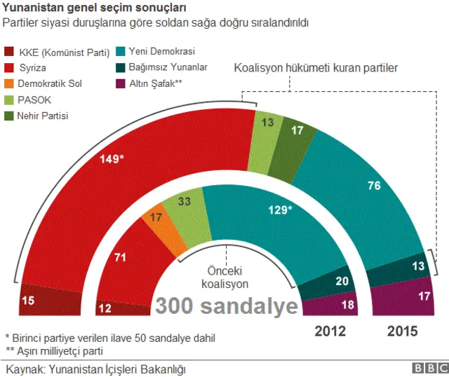 300 sandalyelik yeni parlamentoya 149 milletvekili ile girecek olan Syriza, 13 vekille mecliste temsil edilecek olan sağcı Bağımsız Yunanlar partisiyle koalisyon anlaşmasına vardı.
