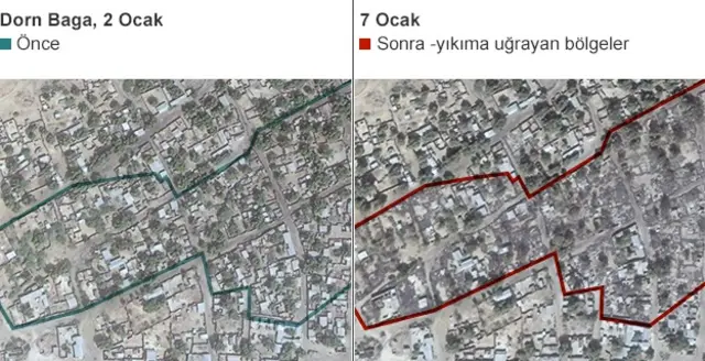 Baga ve Doron Baga'nın saldırılardan hemen sonraki uydu görüntüleri yıkımın boyutlarını ortaya koyuyor.