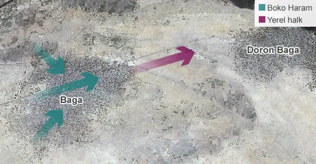 Boko Haram gücü kasaba içinde ilerlerken yaşanan kaosu da anlatıyor görgü tanıkları. Her yöne kaçışan insanları. Bir çoğu yakında Çad gölü kıyısındaki balıkçı kasabası Doron Baga'ya sığınabileceklerini düşünüyor.