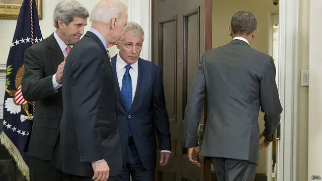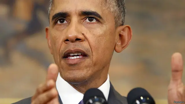 Beyaz Saray'da Başkan Yardımcısı Joe Biden, Dışişleri Bakanı John Kerry ve Savunma Bakanı Chuck Hagel ile kameraların karşısına geçen Obama Kongre'ye sunduğu yetki taslağının IŞİD'i "zayıflatma ve yok etme" stretejilerini değiştirmediğini ve "sonu gelmez" bir savaş mesajı taşımadığını kaydetti.