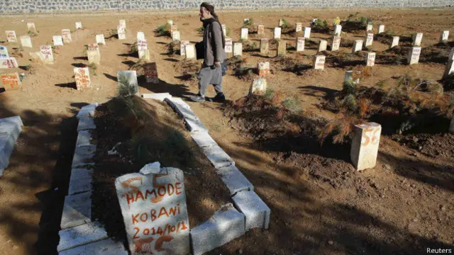 "Daha Batı'da Kobani'nin karşısındaki Suruç'ta ise hükümetin kurduğu parıltılı mülteci kampı yerine HDP'li belediyenin kurduğu derme çatma kamplarda kalmayı tercih eden yaklaşık 200 bin Suriyeli Kürt kalıyor. Savaşta kocasını kaybeden Nejaha, "Burada kendimizi özgür ve evimizde hissediyoruz" diyor. Yerel mezarlıkta 'Kobani şehitleri' için bir yer ayrılmış. Burada 66 mezar var. Ama Muhammed Kobani'ye gömüldü. Annesi 'Cenazesini getirmeye gerek yok. Hepsi Kürdistan' diyor.