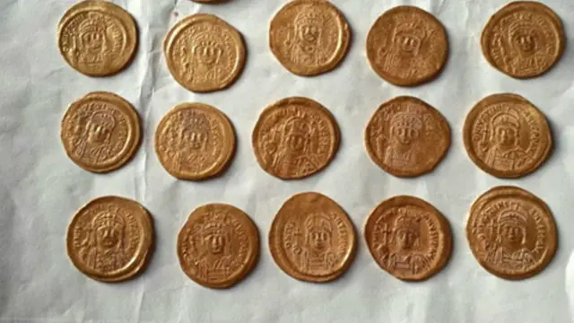 Video konferans yazılımı Skype üzerinden BBC'ye konuşan Ahmed, içi tarihi eser dolu bir battaniyeyi gösteriyor. Hayvan heykelleri, insan figürleri, bardaklar, vazolar, paralar.