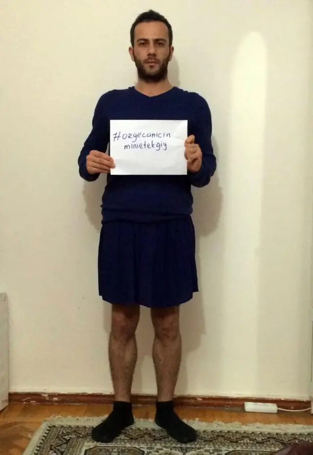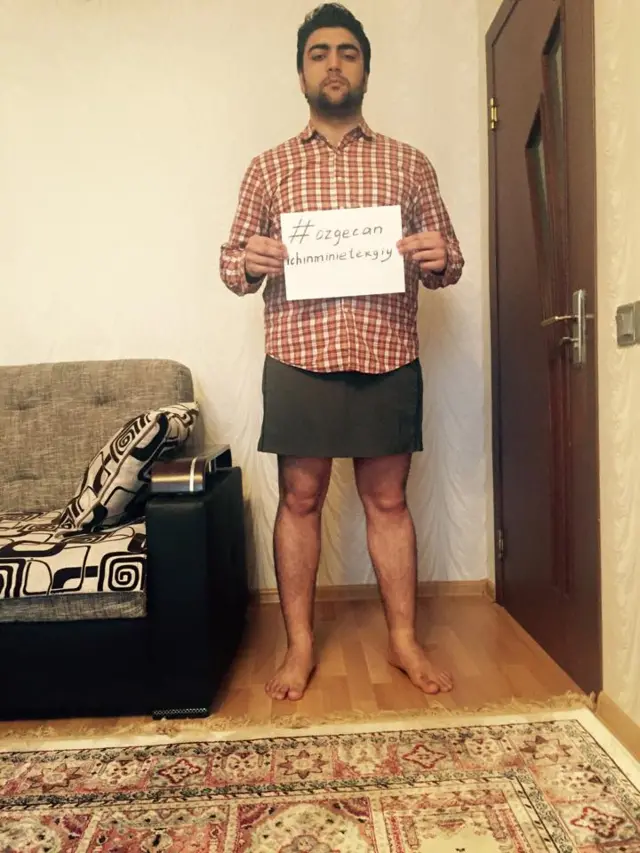 Azerbaycan'da bir grup erkek, Özgecan Aslan'ın öldürülmesini protesto etmek için Facebook'ta #ozgecanicinminietekgiy kampanyası başlattı.