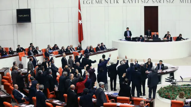 Türkiye Büyük Millet Meclisi Genel Kurulu'nda kavga ve tartışmalar eşliğinde görüşülen İç Güvenlik Paketi'nin ilk 10 maddesi kabul edildi.