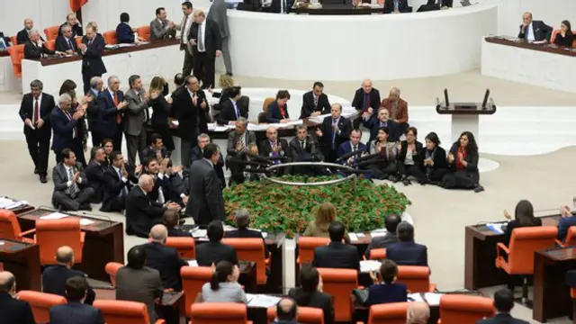 Bazı HDP'li milletvekilleri ise tepki amaçlı olarak yüzlerini fular ile kapattı.