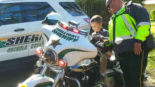 Şehrin polis memurları ve itfaiye ekibi de çocuğu ziyaret etti.