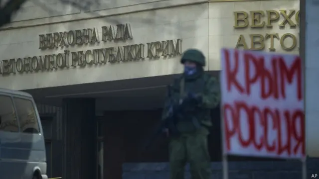 Dört gün sonra, 27 Şubat'ta, silahlı kişiler Kırım'daki yerel parlamento ve yerel yönetim binalarını ele geçirdi ve Rusya bayraklarını çekti.