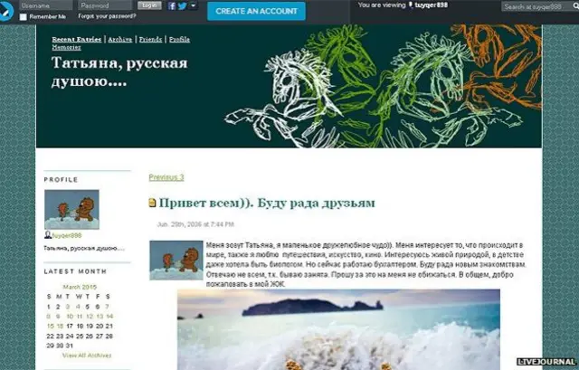 "tuyqer898" adlı bir hesap sahibi, blogunda, "Benim adım Tatyana ve ben küçük sevimli biriyim. Dünyada olan bitenlere ilgi duyuyorum. Seyahat etmeyi, sanat ve sinemayı da seviyorum." diyor.