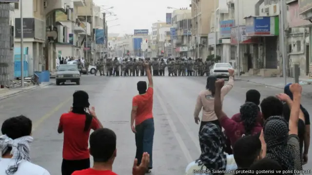 Kaynak, Bolgede Siilerin bir protesto gosterisi ve polis barikati