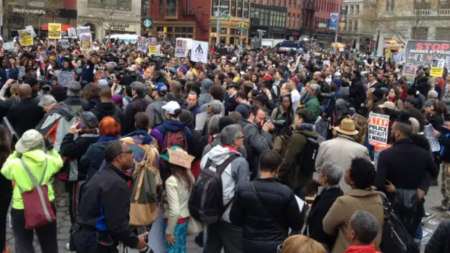 New York, Union Square'de yaklaşık iki bin kişinin katıldığı eylemde söz alan konuşmacılar arasında polis kurşunuyla hayatını kaybedenlerin aileleri, çeşitli kiliselerden rahipler ve Amerikan Devrimci Komünist Partisi'nden temsilciler bulundu.