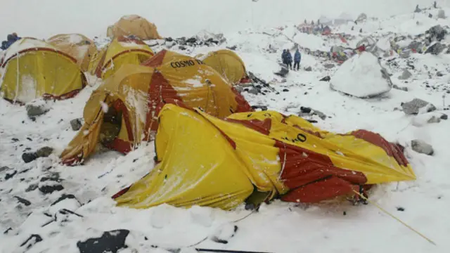 Dağcıların şansına kayalar çadırlardan yaklaşık 400 metre mesafeye yuvarlandı.