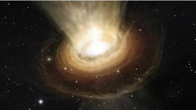 Samanyolu galaksisinin merkezinde, Güneş’ten yaklaşık dört milyon kat daha büyük devasa bir kara delik vardır. Buradaki yerçekimi kuvveti öyle güçlüdür ki ışığı bile yutar; etraftaki toz ve gaz bulutlarını çeker. Bu bulutlar disk halinde deliğe doğru sarmal bir şekilde sürüklenir. Bu sırada oluşan sürtünme ile milyarlarca derece ısı ve radyasyon, enerji akımı ve elektrik yüklü parçacıklar ortaya çıkar.