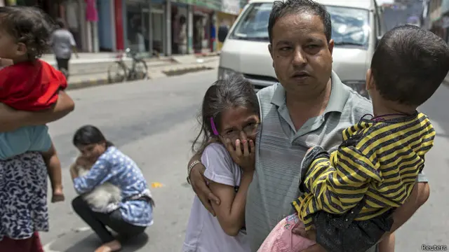 Yerel saatle 12.35'te meydana gelen depremin ardından Nepal'in başkenti Katmandu'da insanların korkuyla binalardan dışarıya kaçtığı bildiriliyor.