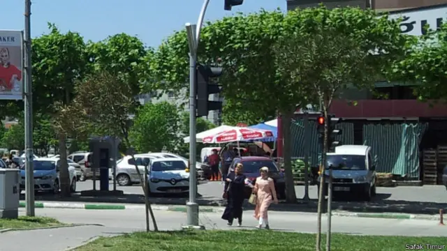 Kuruyemişçinin biraz ilerisindeki otobüs durağında soluklanan bir anne-kıza rastlıyorum, önlerinde bir bebek arabası var, alışveriş yapmışlar, arabadaki ufaklık öğle uykusunda.