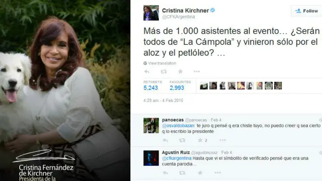 Ama Arjantin lideri Cristina Kirchner'in karşıtları, Kirchner'in Twitter'da yazım hatalarından daha vahim suçlar işlediğini söylüyor.