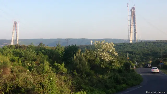 Köprünün devasa ayakları yükselmiş, orman içinden kilometrelerce kıvrılan yola beton dökümüne başlanmış. Dört yanda hafriyat kamyonlarının hareketliliği var.