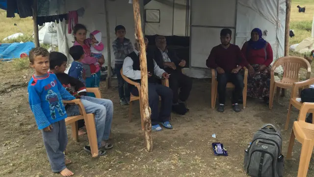 İşçilerin su, hijyen, çadır hayatının zorlukları gibi sorunlarını dinledikten sonra sohbet seçimlere dönüyor.
