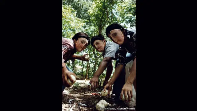 Susan Meiselas’ın, Molotof kokteyli fırlatmaya hazırlanan adam fotoğrafı Nikaragua devriminin simgelerinden biri olmuştu. Bu fotoğrafta ise ev yapımı bomba yaparken geleneksel dans maskeleriyle kimliklerini gizleyen Nikaragualıları görüyoruz. “İlk kez fotoğrafıma konu olan insanların iletmek istedikleri mesajları için beni kullandıklarını gördüm” diyor Meiselas. New York Times Dergisinin kapağında kullanılan bu fotoğraf onun medyadaki ilk fotoğrafı olmuş.