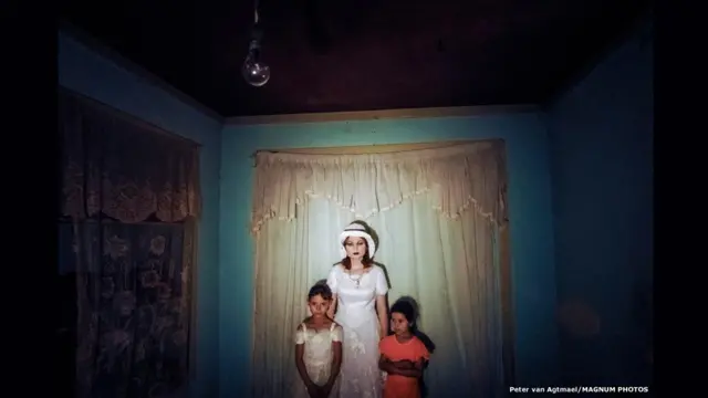 “Amerikan askerlerine iliştirilmiş olarak geçirdiğim birkaç yılda savaşı yabancı bir ordunun dar lenslerinden görmüş, bölge halkıyla irtibatım olmamıştı. Kendimi Afganistan ya da Irak’tan ziyade Amerika’da gibi hissediyordum. Bu fotoğrafı çektiğim ziyaretimde ilk kez iliştirilmiş fotoğrafçı olarak gitmemiştim. Bu fotoğraf ABD’de yaşayan sakat bir Afgan’ın Afganistan’daki düğününde çekildi. Gelin Fahima yeğenleriyle poz vermişti. Bu seyahatin ardından perspektifimin ne kadar sınırlı kalmış olduğunu gördüm... Afganlar artık birer gölge değil, birey olmuşlardı. Önceki dar kapsamımdan utandım ve çalışma tarzımı değiştirdim.”