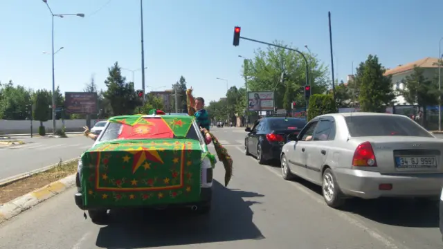 Akşamdan beri araçların konvoy geçişi dışında kent merkezi olabildigince sessiz. Herhangi bir hareketlilik yok. Araç Sürücüleri, HDP bayrakları asarak kornalari çala çala şehrin sokaklarını turluyorlar.