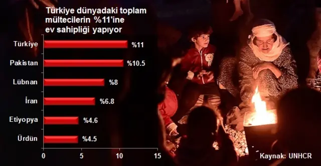 2014'te Türkiye'ye 1,59 milyon mülteci kabul etti. Türkiye'yi 1,51 milyon mülteciyle Pakistan ve 1,15 milyon mülteciyle Lübnan izledi.