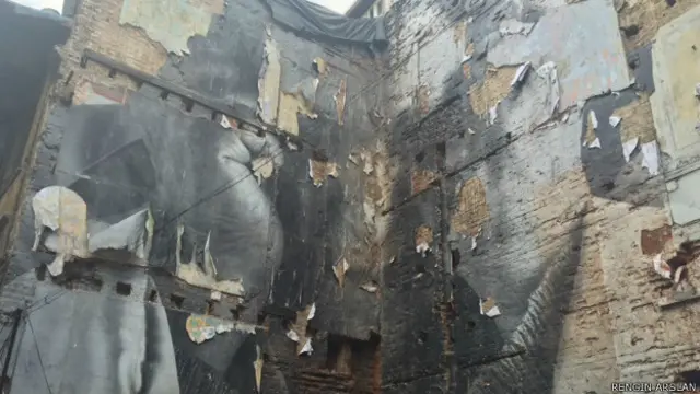 Aynı bölgede yer alan, bundan üç hafta önce gördüğüm bir duvardaki başka bir çalışma da tahrip edilmiş.