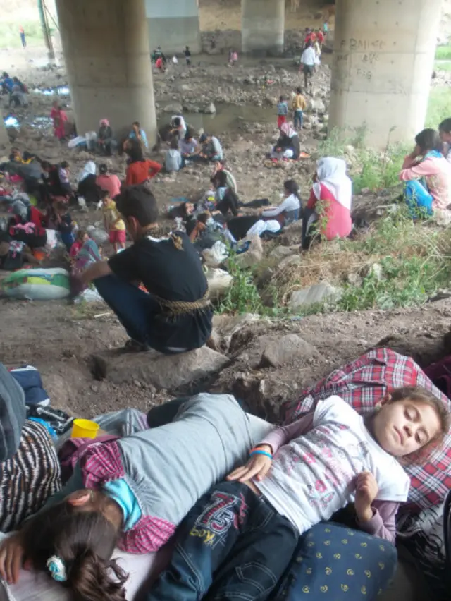 Sahip oldukları her şeyi yanlarına alan Ezidiler, çocuklarıyla birlikte buradaki bekleyişlerinin ne kadar süreceğini bilmediklerini söylüyor.