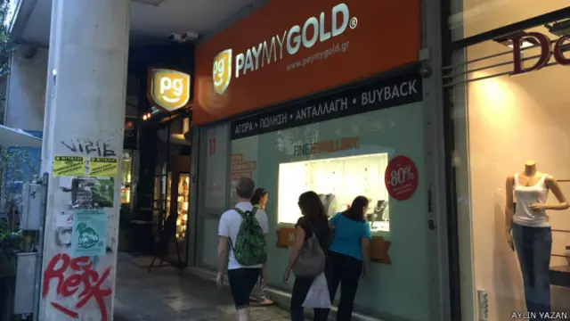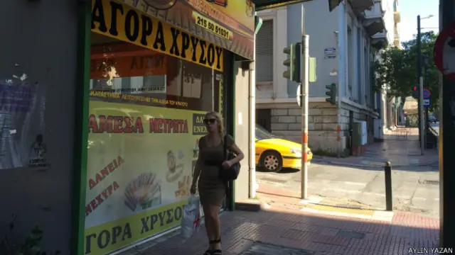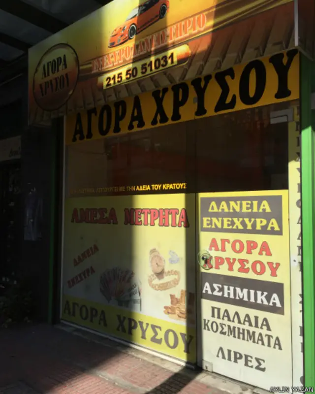 Atina sokaklarında yürürken vitrin camları altın fotoğraflarıyla kaplı, fakat vitrininde hiç altın olmayan birçok dükkan çıkıyor karşınıza.