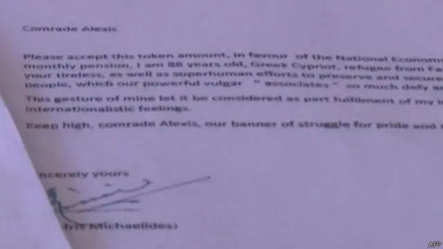 Kıbrıslı emekli 506 euroluk maaşını 'Yoldaş Tsipras'a gönderdi