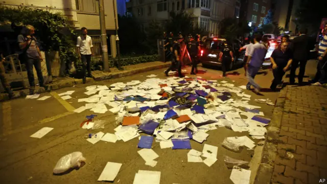 Yaklaşık 200 kişi konsolosluğun camlarını ve kapısını kırarak içeri girdi. Doğan Haber Ajansı'nın aktardığına göre dün gece konsolosluğun önünde toplanan Doğu Türkistan Maarif Derneği üyeleri, binanın içine girerek evrak ve klasörleri sokağa döktü.