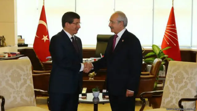AKP Genel Başkanı Ahmet Davutoğlu, bugün koalisyon görüşmelerinin ilkini CHP lideri Kemal Kılıçdaroğlu ile yaptı.