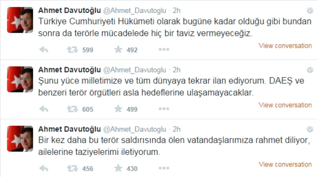 Twitter hesabından yaptığı açıklamada, "Terör örgütleri ile bağları ortadayken gencecik bedenler üzerinden siyasi rant devşirmeye çalışanlara da sesleniyorum" diyen Davutoğlu, şöyle devam etti: