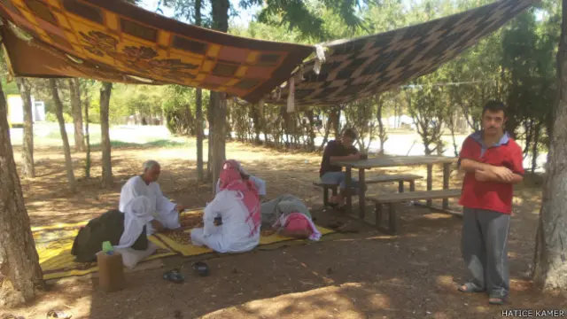 Yaşanan acılar hâlâ ilk günkü gibi taze bir de buna belirsiz gelecek eklenmiş. Hava dayanılmaz derecede sıcak. Bu yüzden çadır kent sakinleri ağaçların gölgesine gerdikleri battaniyelerin altında serinlemeye çalışıyor.