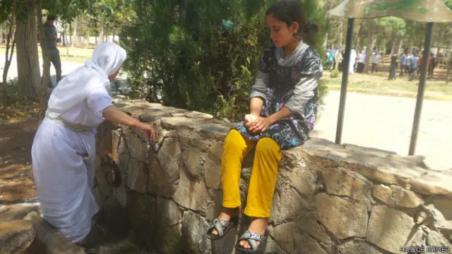 “Hava çok sıcak, su da sıcak, serinletmiyor ki” diyerek gülüyor. Geçen sene bir sürü küçük çocuğun Şengal’de susuzluktan öldüğünü söylüyor.