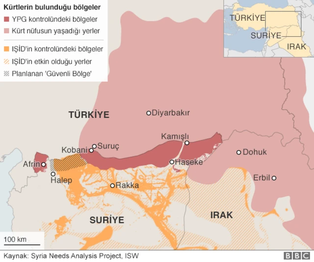 Türkiye hükümeti "güvenli bölge"nin Azez-Cerablus hattında oluşturulmasını istiyor.