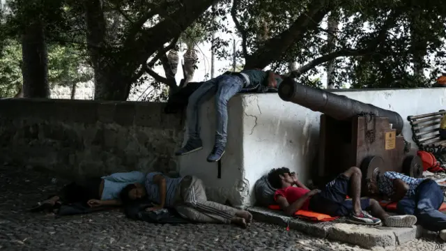 Göçmenlerin çoğu adadaki parklarda ve meydanlarda yaşıyor. AP haber ajansı, Salı günü yaklaşık 1500 göçmenin kayıt işlemleri için stadyuma yerleştirilmek istenmesi üzerine protesto gösterileri düzenlendiğini aktardı.